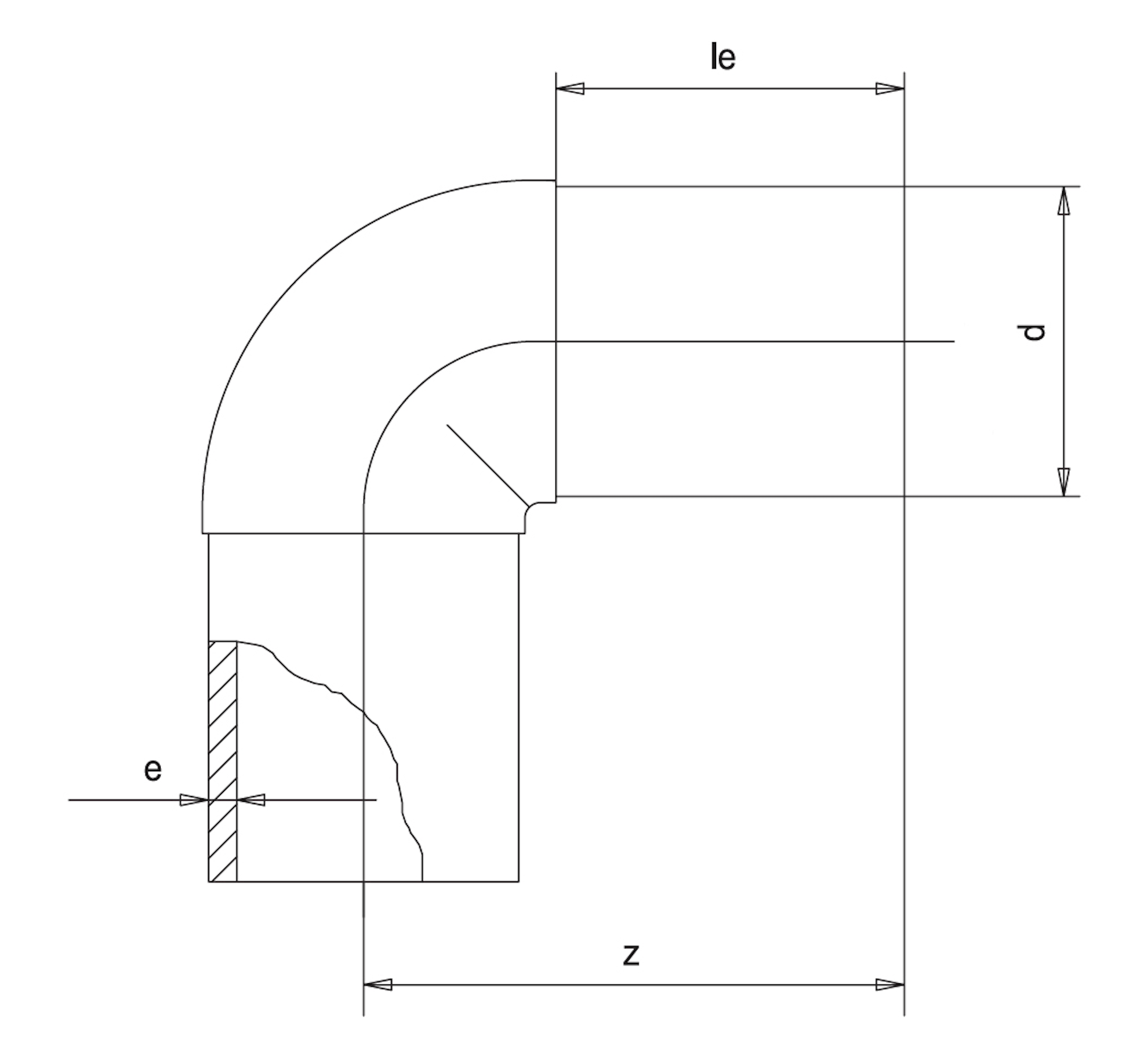 SDR 17 d (mm) 315 e (mm) 18,7 le1 (mm) 153 z1 (mm) 370 PN 10 Angle 90 Weight (kg) 15,81