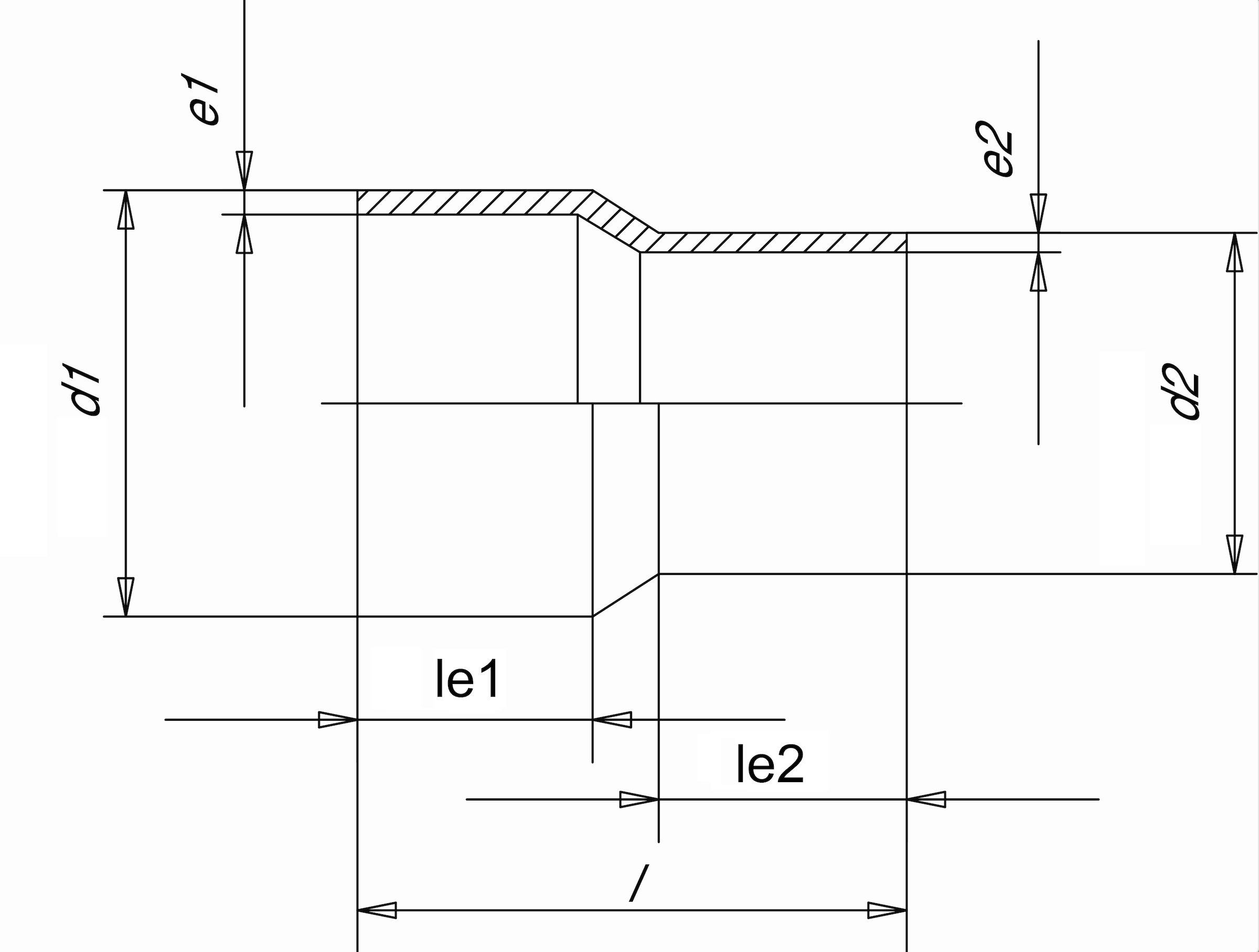 SDR 11 d1 (mm) 40 d2 (mm) 32 e (mm) 3,7 e2 (mm) 2,9 le1 (mm) 49 le2 (mm) 44 Length (mm) 105 Weight (kg) 0,039